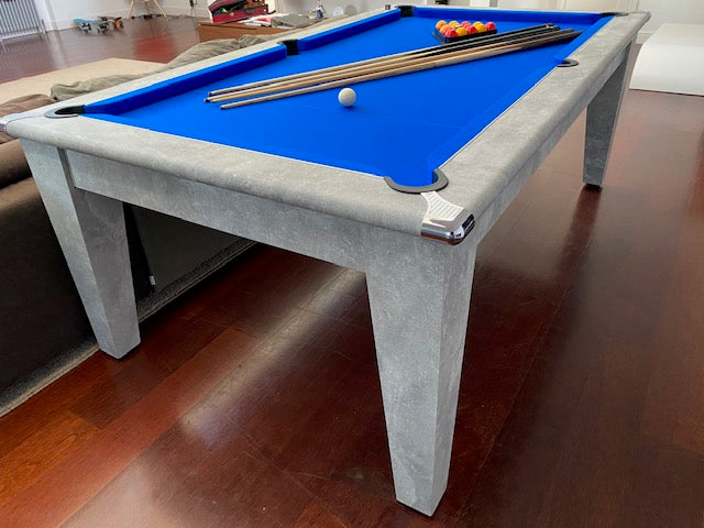 The Supreme Classic Diner is available in a Italian Grey finish. It, is a modern style dining table which easily converts into an English pool table. With tapered legs, invisible levelers, a two piece dining top and complimented by the chrome corner plates, this is a great addition to any home environment.